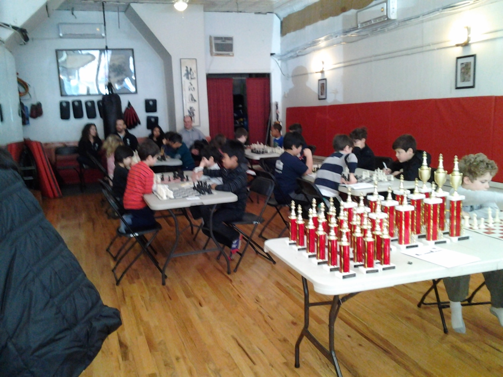 Today was the first tournament ever at the karate studio UWS Kenshikai on Upper West Side. Chess is loved by the martial artists and many of the kids practice both, so it was a great opportunity to all of the chess kids who come to the UWS Kenshikai Dojo to do karate to compete on the 64 squares this time. We had 18 kids in two different sections, the youngest players were 5 years old! Everybody had a great time and took a nice trophy award home. More tournaments are coming soon!